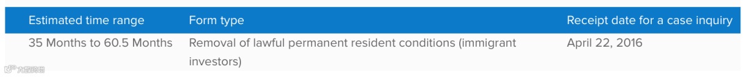 2. I-829申请,审理时间跨度为35-60.5个月,案件查询起始时间为2016年4月22日: