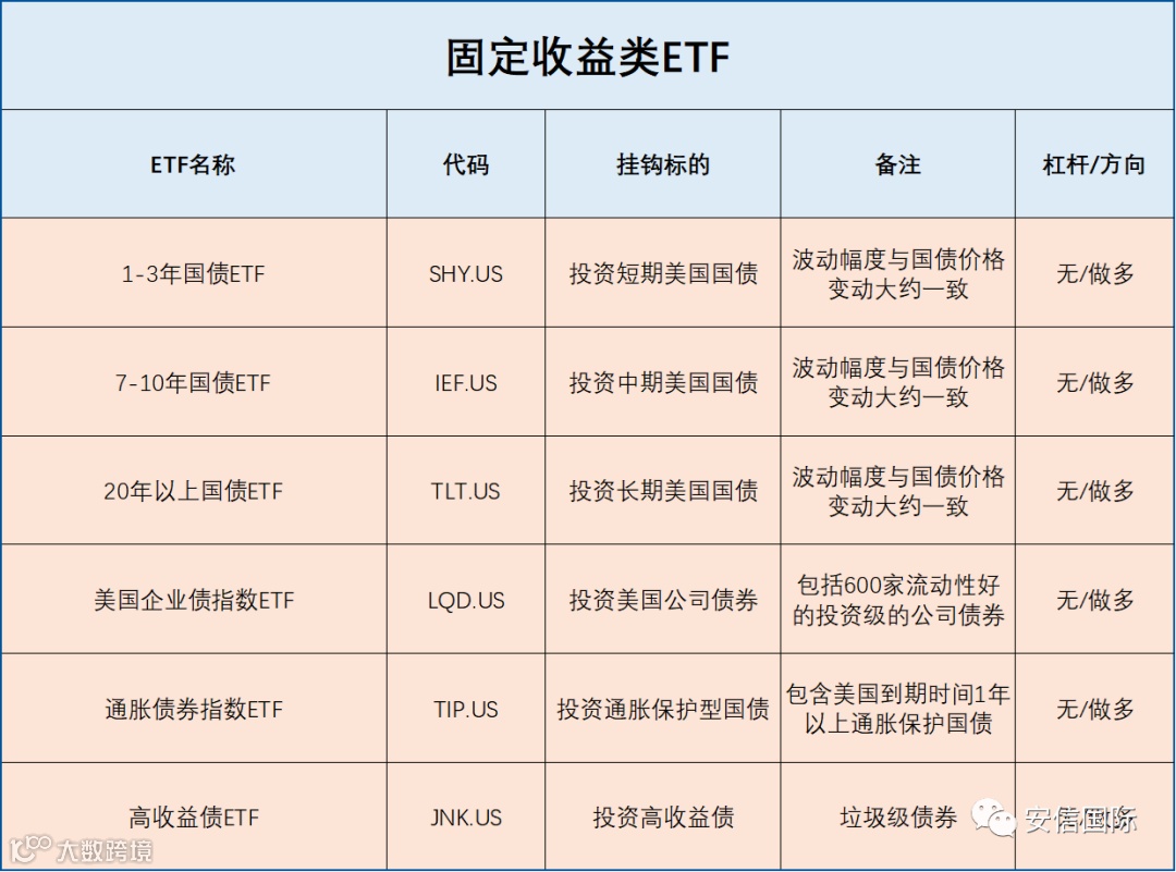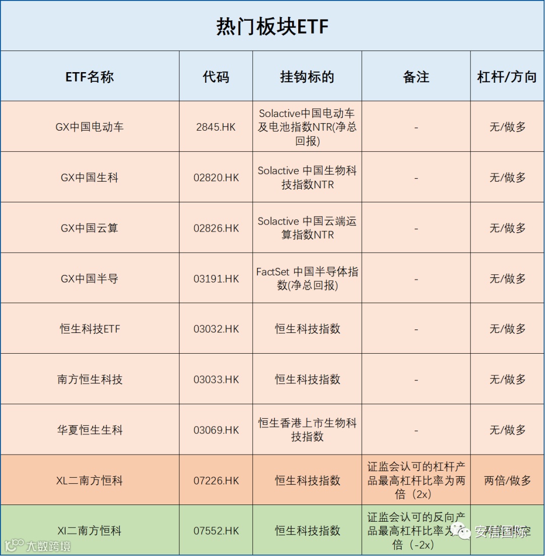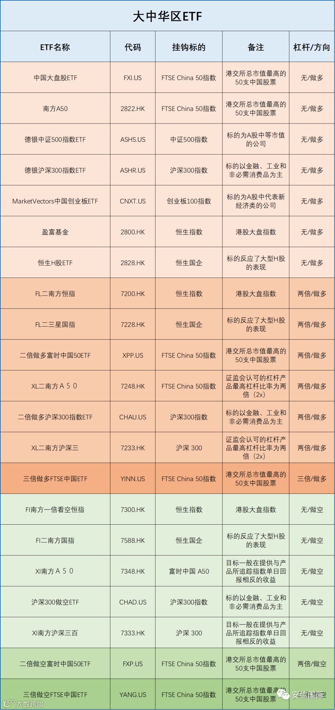 在全球市场波动加剧大背景下,在追逐风险和规避风险互现的环境中,如果你不知道如何挑选个股,ETF能让你在拥有一个股票账户的情况下轻松买遍全球的投资品类,多空灵活切换,带来稳健的收益。以下为安信国际为你整理的港美股主要的ETF,供参考。