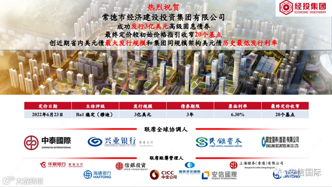 导读:安信国际成功协助常德市经济建设投资集团有限公司发行3亿美元境外债券
