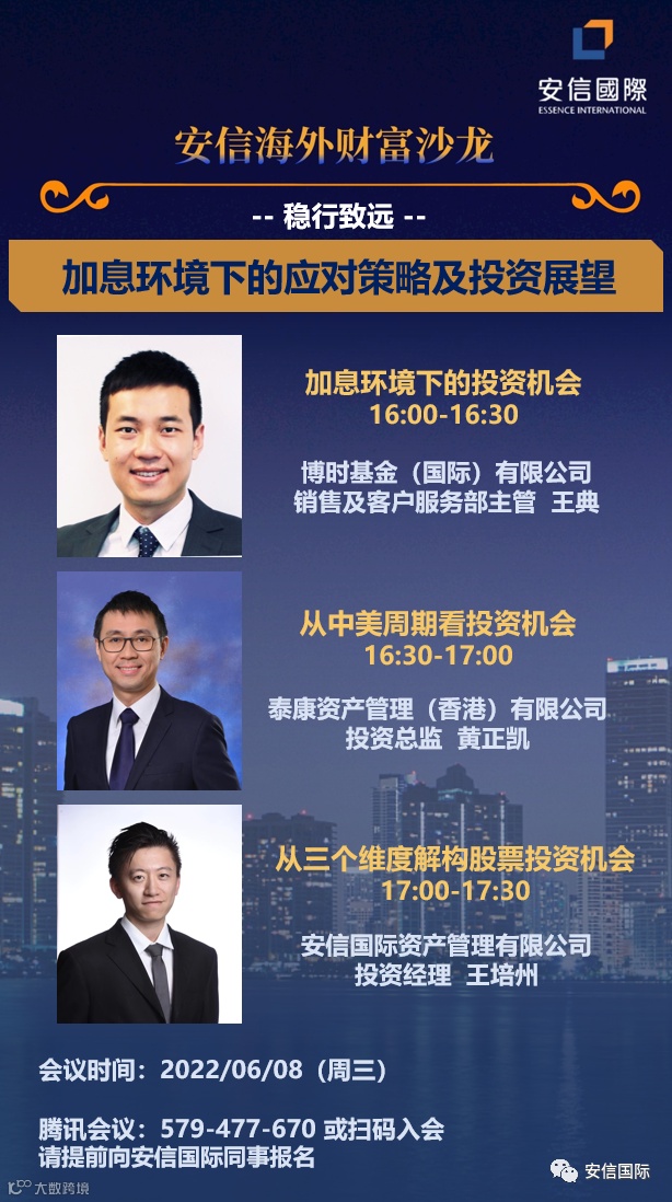 安信海外财富沙龙——加息环境下的应对策略与投资展望(6月8日,今日)