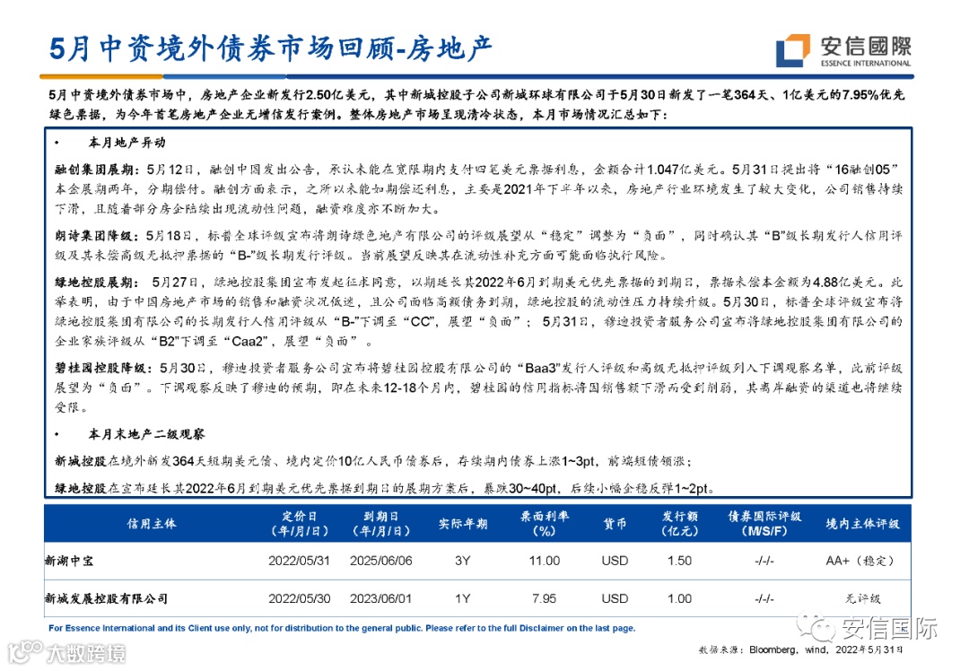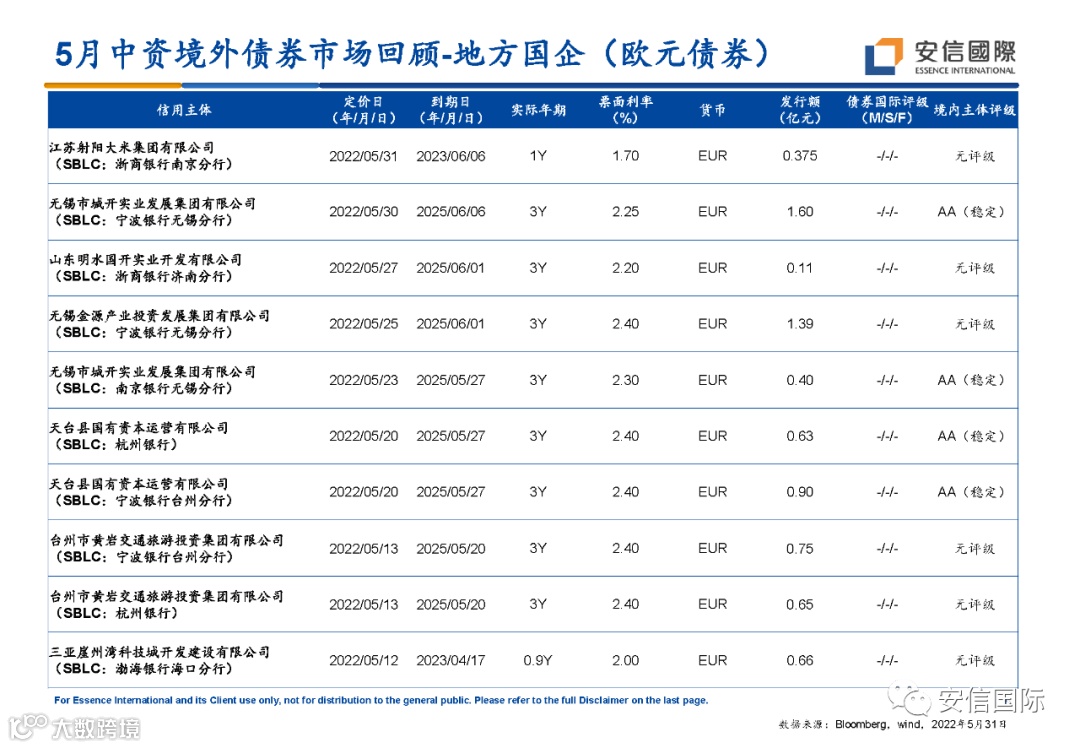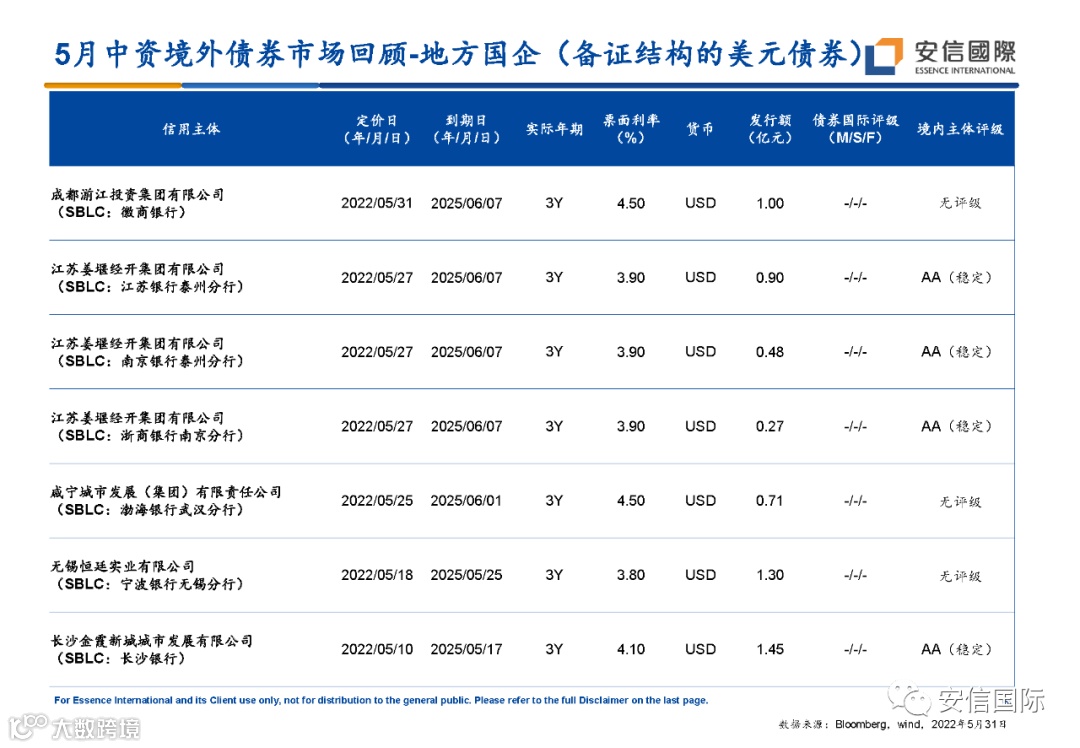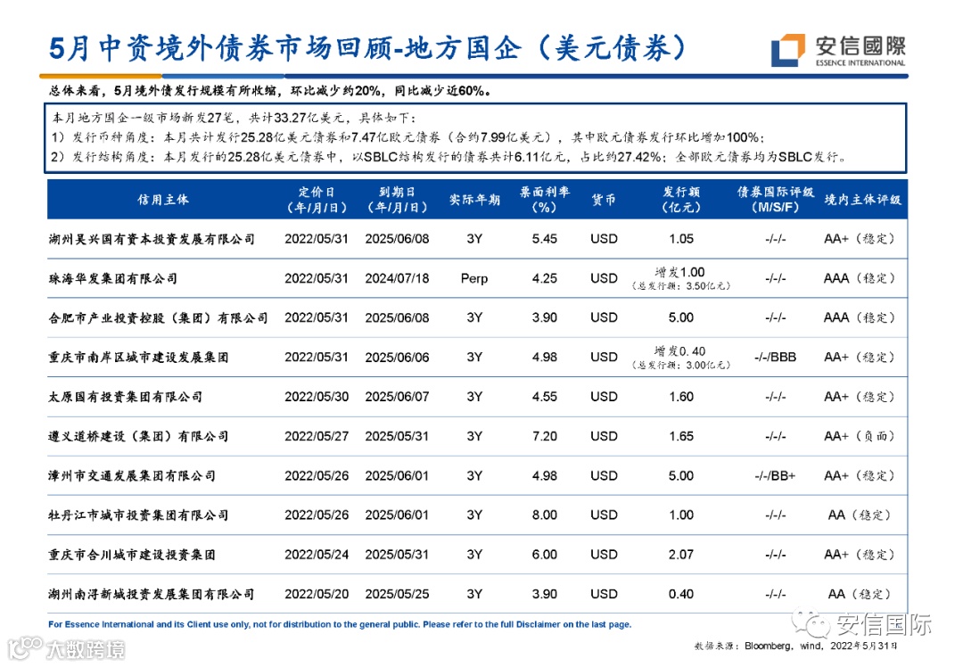 安信国际 | 中资企业境外债券市场5月报告及货币政策专报