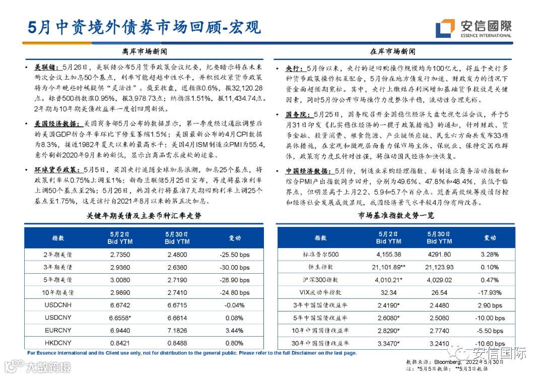 导读:中资企业境外债券市场5月报告及货币政策专报