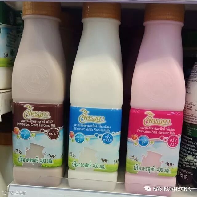 泰国有个非常感人的说法,泰国的孩子都是喝着国王父亲的奶长大的。先别觉得好笑,这话可是非常有道理的。泰国人日常所饮用的奶制品中,一部分是来自于先王普密蓬陛下所颁布创立的皇家项目。皇家项目里的农产品里有多种多样不同的牛奶,其中低温鲜牛奶(巴氏杀菌)分为3种:淡味鲜牛奶,加氟牛奶,调味乳(咖啡、蛇皮果、香草),容量分别为:200ml袋装、450和800ml瓶装、5L加仑装。常温鲜奶(UHT高温杀菌)有211ml袋装及利乐包。价格也非常实惠,售价最低从8泰铢起,在常温下也可以保存很久。牛奶绝对是皇家农产品里必不可少的一样产品。