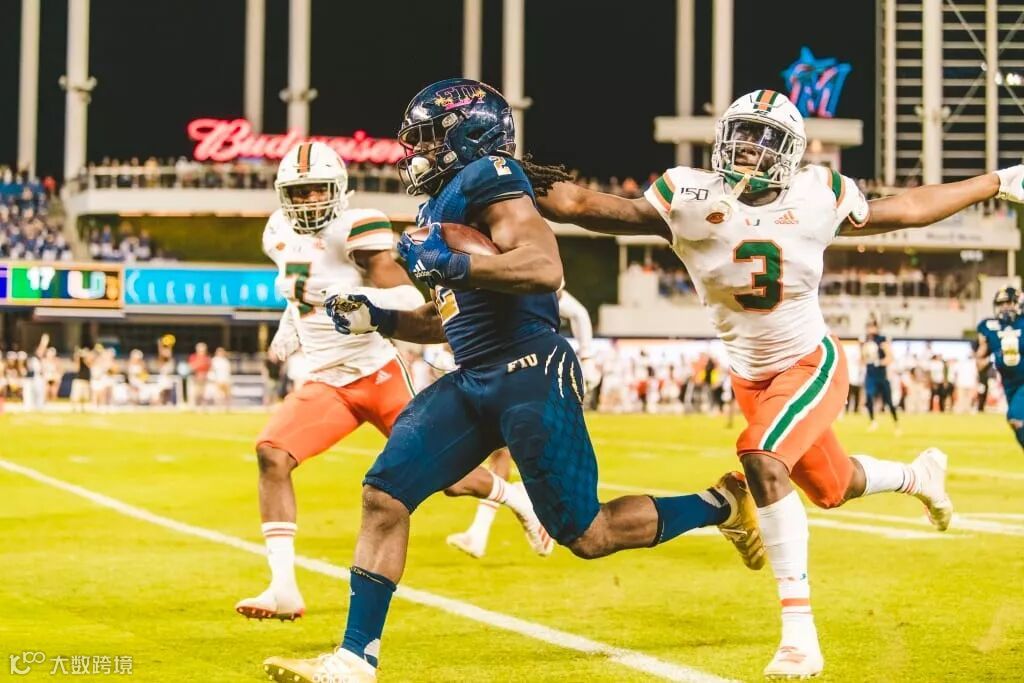 高级安东尼·琼斯(Anthony Jones)逃脱了UM防守者,获得了FIU的第三场达阵得分,这是第四节的37码跑动,使黑豹队(Panthers)上升30-17。