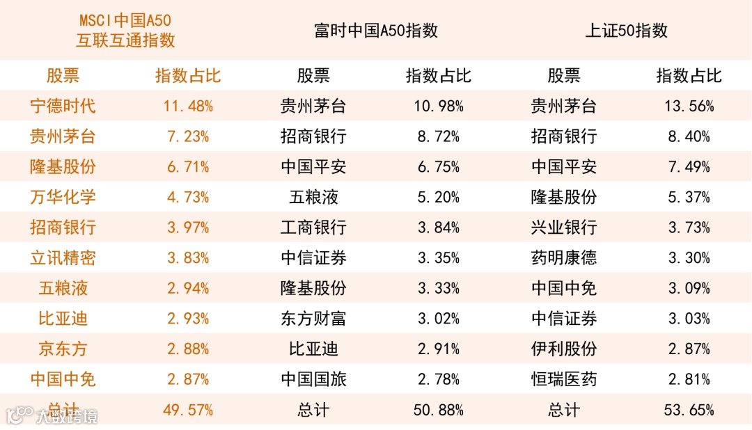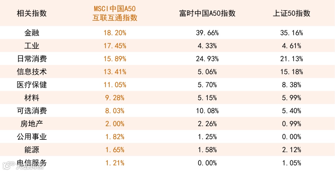 MSCI中国A50互联互通指数与现有的上证50指数和富时A50指数定位接近,但侧重不同,在行业上更为均衡,避免了向金融行业倾斜。