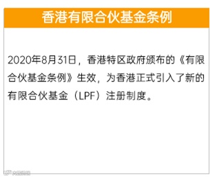 在这样的时代背景下,香港当局看到了机会,在2020年出台了《香港有限合伙基金条例》,这也是香港版的LPF第一次出现在公众眼里。