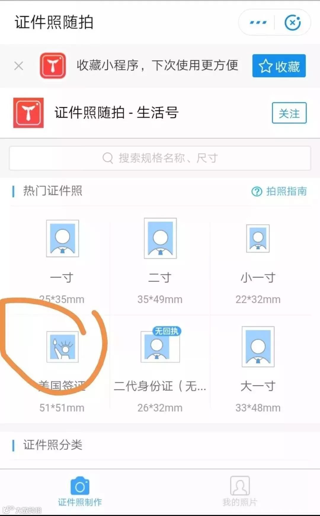 选择“证件照拍摄”→“美国签证”