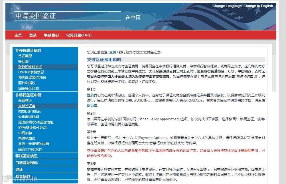 根据美国签证官网显示,使用支付宝在线支付的流程如下: