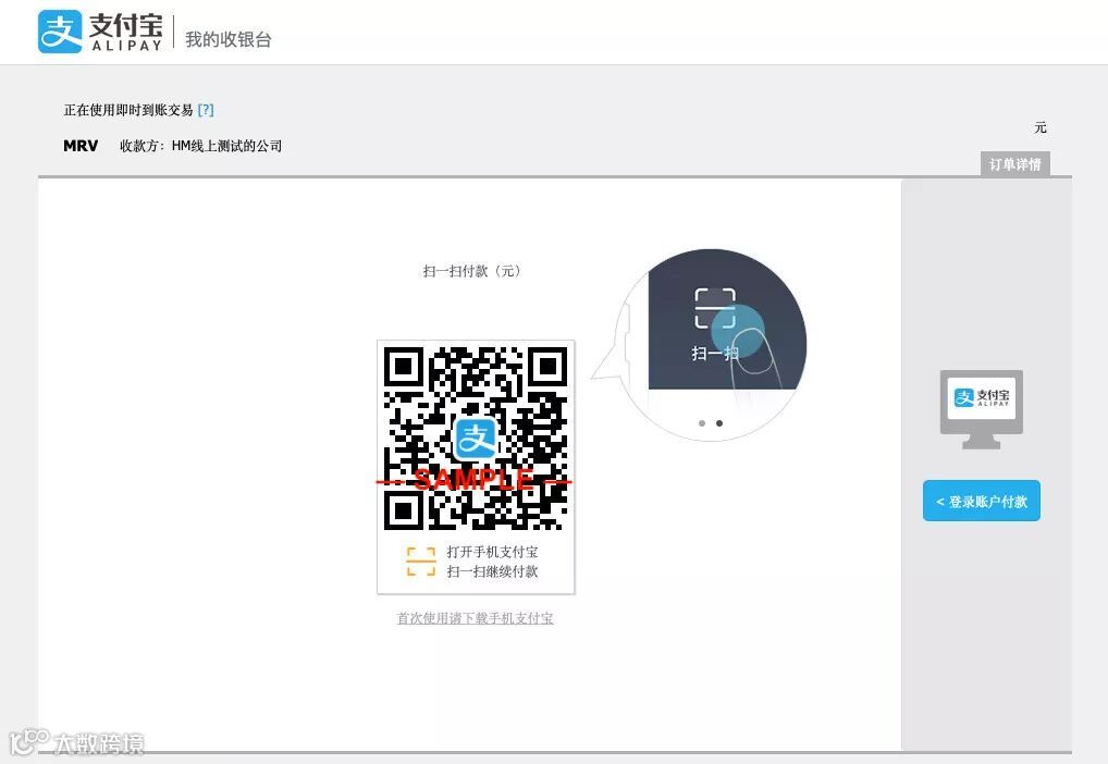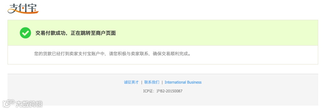 通过手机支付宝终端完成支付后,会有以下界面确认支付成功: