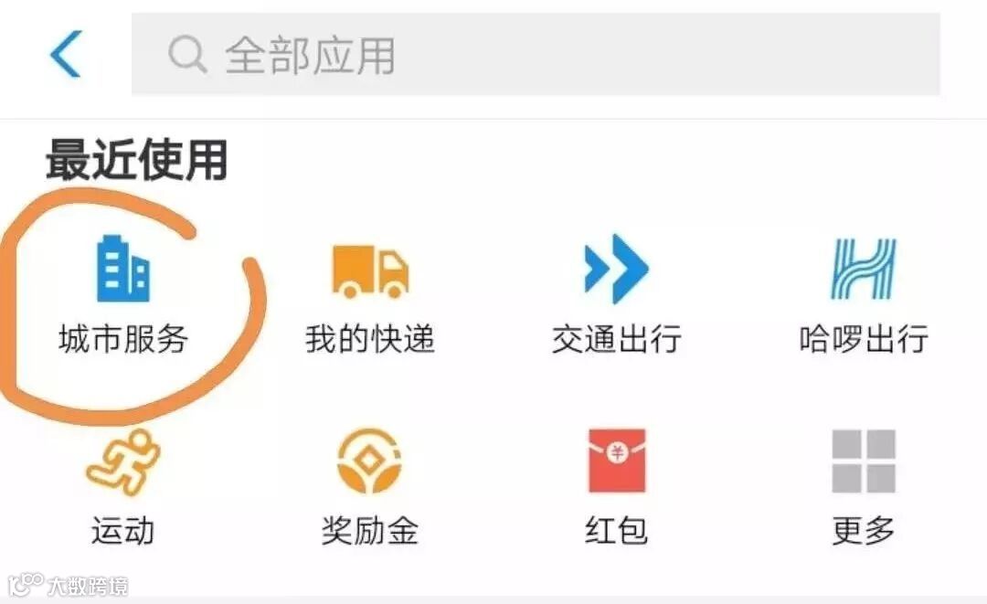 打开支付宝,检索到“城市服务”