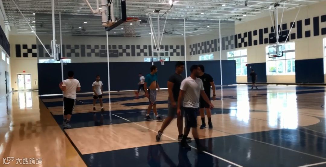 篮球场很大很明亮,有两个全场的场地,平时打球赛的时候很热闹。美国人平时很喜欢打全场,而且不会有男生女生的区别,男生女生经常一起打比赛,但是默认还是女生防守女生,emm······