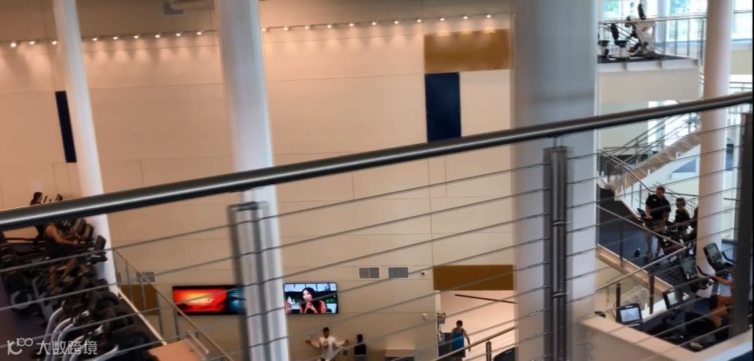 这里的跑道居然建在三层,围着整个健身房,从这里看下去可以看到很多的同学在不同的区域进行锻炼,窗外的风景十分美丽,可以看见蓝蓝的天,白白的云,仿佛置身在大自然中慢跑,对于小编我这个懒癌患者,都忍不住想去这样的健身房体验一番呐!