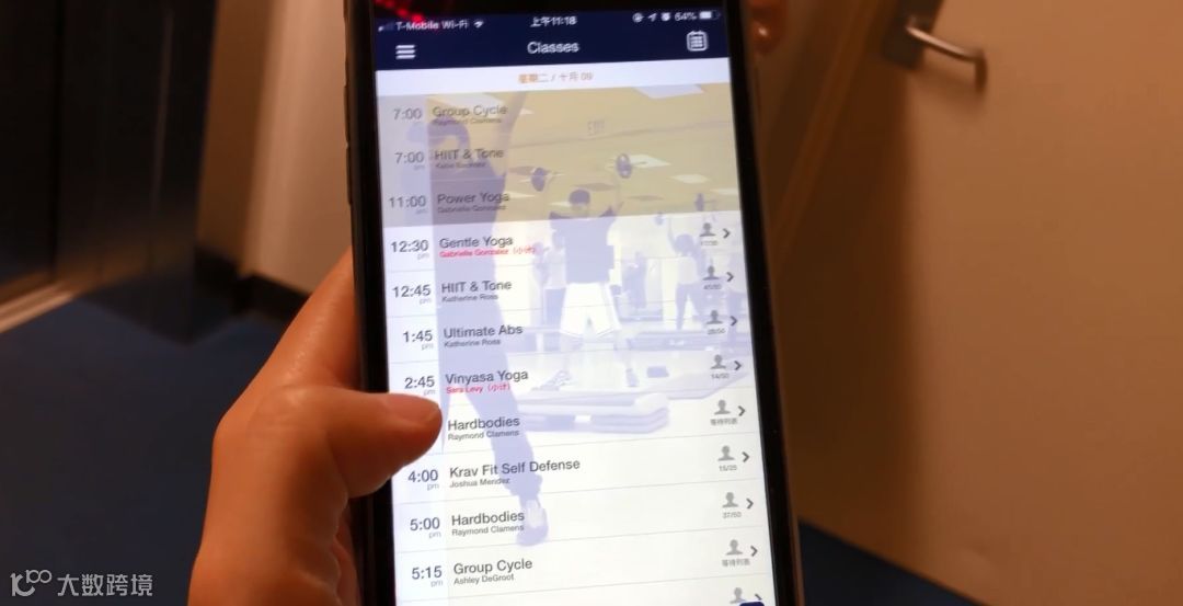 划重点了,这里的健身房有自己的APP,每天有什么课都能在APP里看到,如果你想参加哪门课,点进去,就能看到老师的信息,时间,之后点击预定课程就可以了,是不是很方便呢?而且,都是免费的哟~