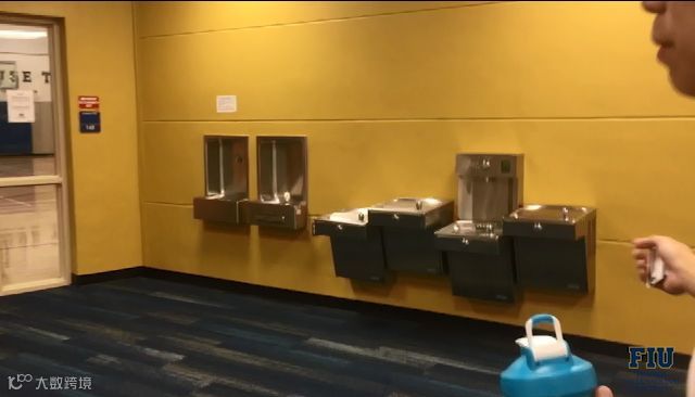往前走,在篮球场的门口,有一个直饮水设备,也许你在美剧中见过,这种设备在美国很常见,流出来的水都是很干净的,可以直接饮用。
