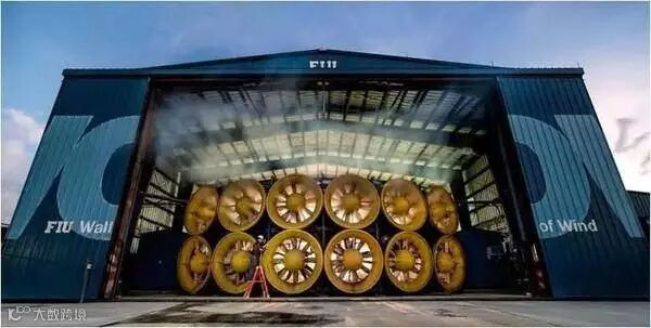 据介绍,FIU“风墙”配备的12台直径6英尺(约合1.8米)的巨大涡轮每分钟可产生8.5万立方米的空气,相当于8000台电风扇同时工作的结果。换句话说,FIU“风墙”最高可产生时速256公里的飓风,相当于5级飓风的风力,而“风墙”配备的照相机和传感器则可以记录包括屋顶抗压能力在内的多种数据。因此,FIU被誉为“世界上唯一可根据需要召唤飓风的地方”!