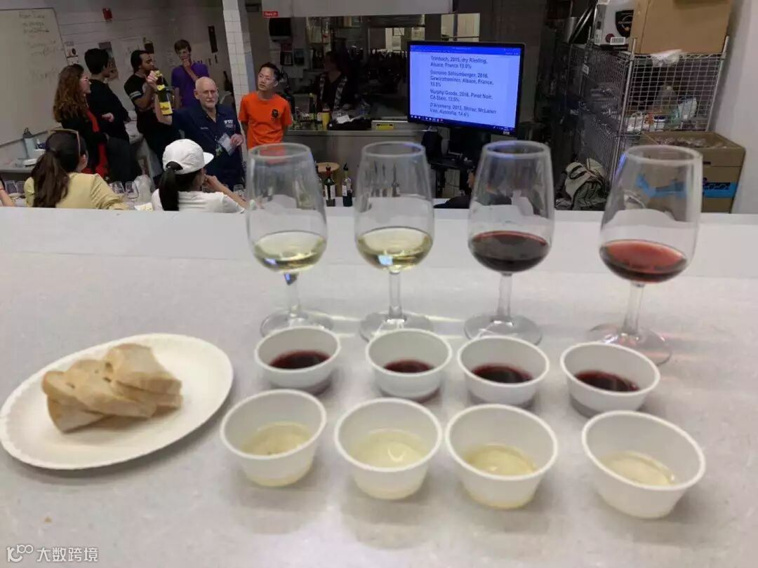 大家体验了一堂新奇又有趣的酒水品鉴课。学院教授热情地邀请学生们动手制作酒。他告诉大家,品酒如品茶,首先需要了解红酒的文化和历史,还需要知道它的酸度、烈度、口感等,酒入口后细细地品尝酒的回味。