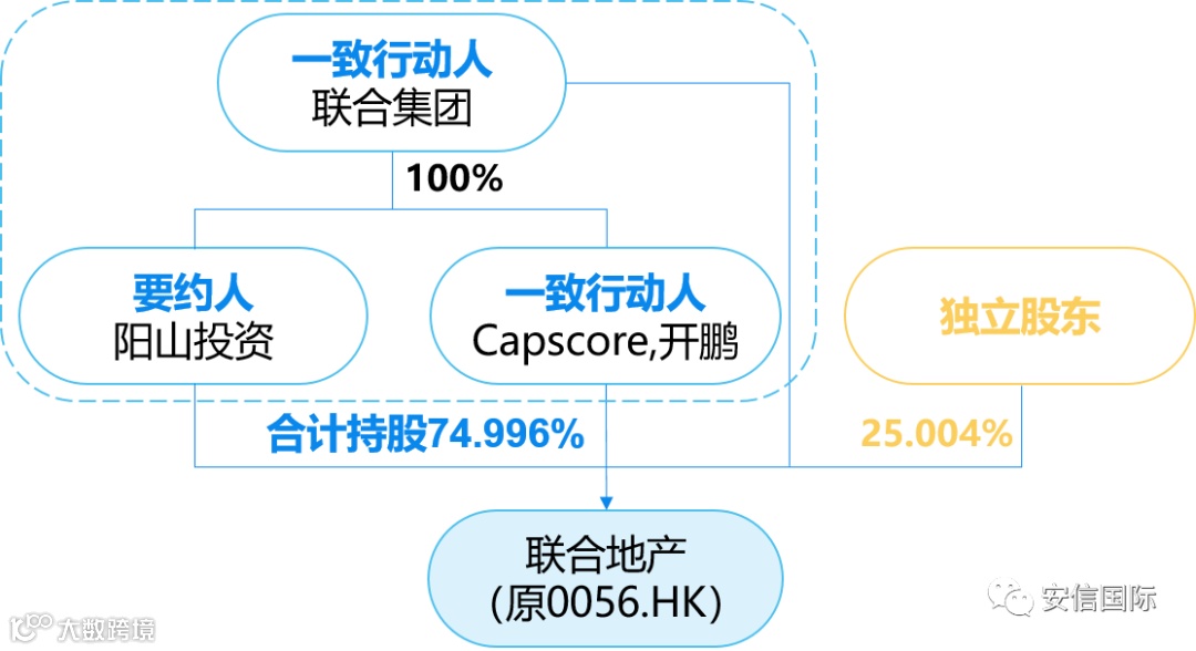 2020年4月,联合地产公告以协议安排方式私有化,要约人阳山投资是第一大股东,连同母公司联合集团(0373.HK)和母公司旗下的其他附属公司合计持有联合地产约74.996%股份,市场上流通的股份较少。