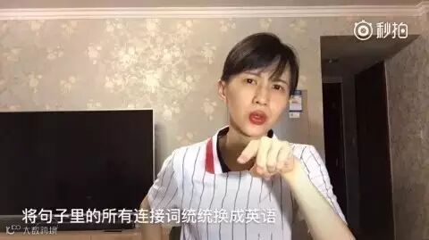 papi酱解读:将句子里的所有连接词统统换成英语,使转折显得更为转折。