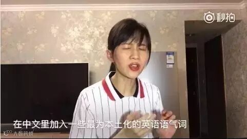 papi酱解读:在中文里加入一些最为本土化的英语语气词,以打造一个在海外生活了多年的人物形象。