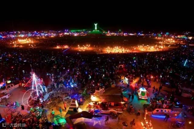 ▲沙漠里就像一座凭空出现的城市,这里成为了人们展示自我的最佳舞台。到了晚上,这里就成为一座不夜城。震耳欲聋的音乐和喷着火焰的艺术大巴到处游走,各种大型音乐表演、舞会、派对层出不穷。