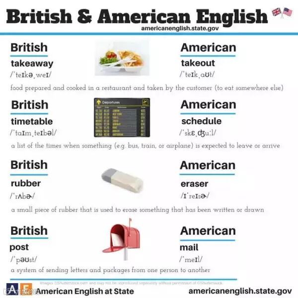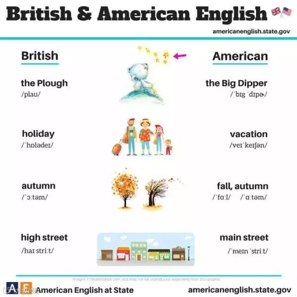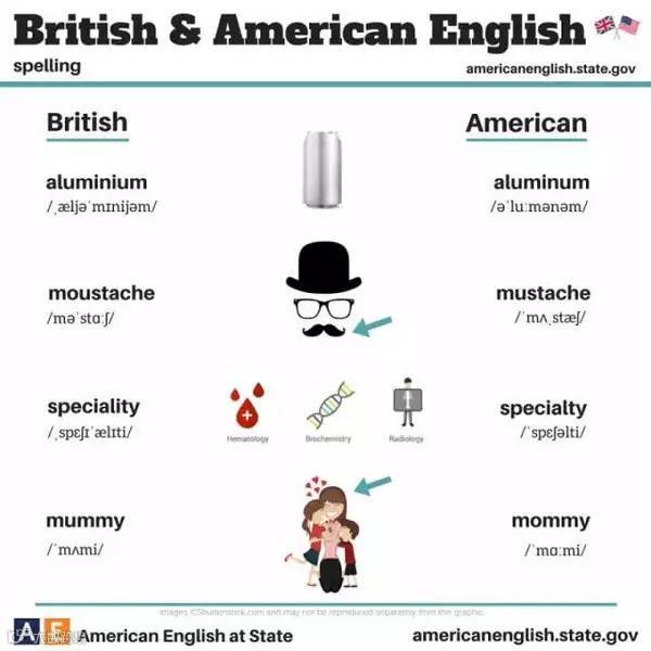 飞出国平台订阅号满口英伦腔的不一定说得好正经英式英语,脱口就是美剧范儿的也不见得都是标准美语。对于爱学英语小伙伴们来说,就算把语音模仿到天衣无缝,稍不留神还会被人戳穿,然而出卖你的却不是你的语音语调,而是暗藏在英语和美语中的玄机。今天小编就带大家一起来看看这美式英语和英式英语的的区别吧~