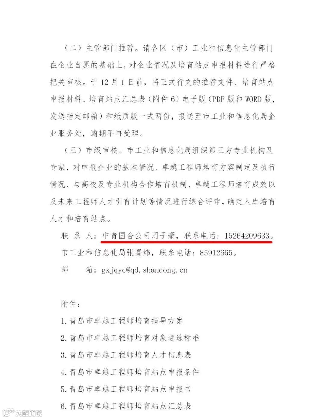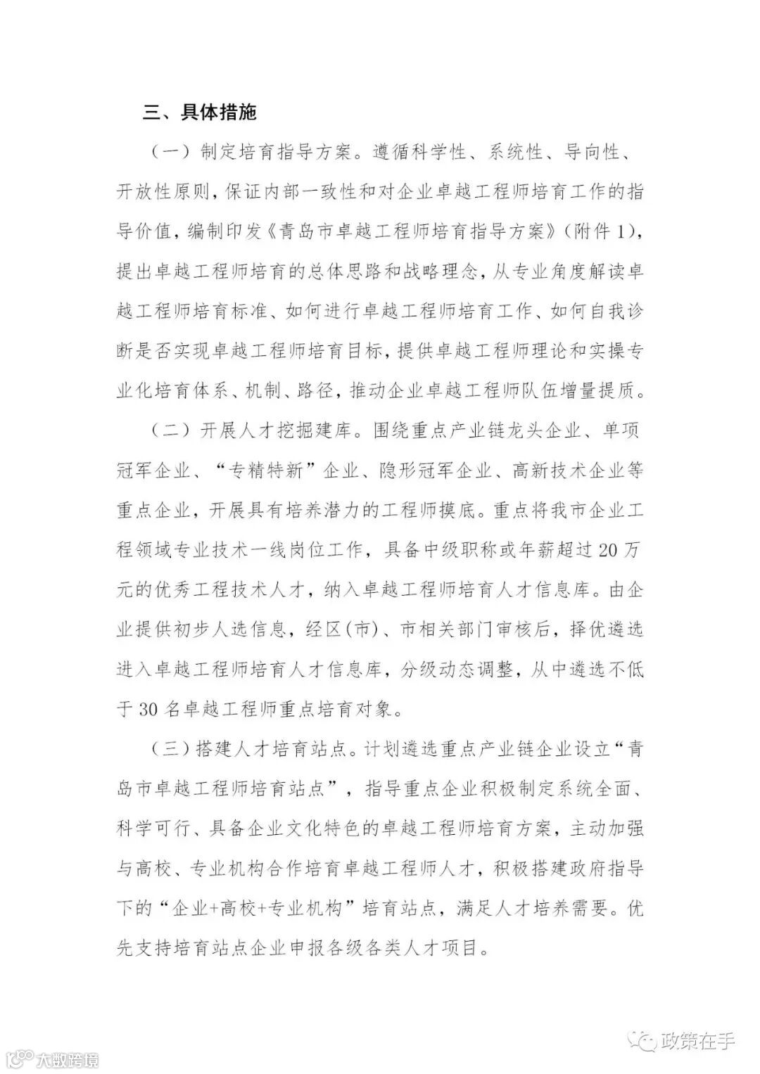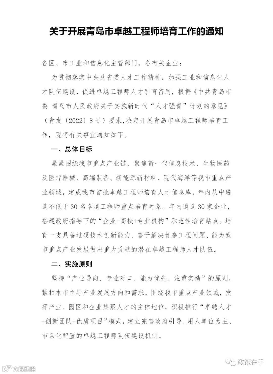 政策 | 关于开展青岛市卓越工程师培育工作的通知 中青国合集团