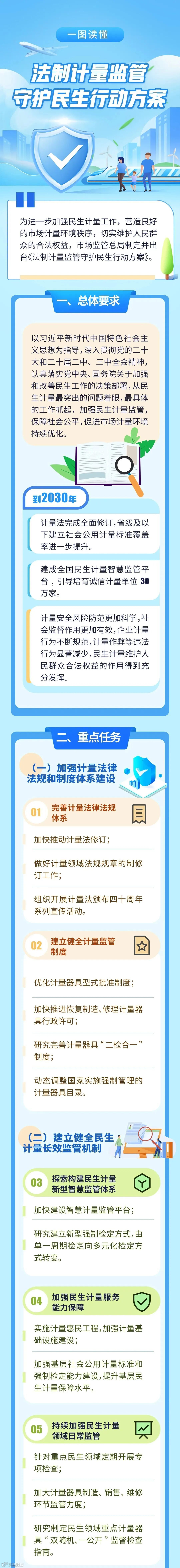 近日,市场监管总局印发《法制计量监管守护民生行动方案》(以下简称《方案》),旨在聚焦民用 “三表” 等民生计量领域突出问题,加强计量监管,营造良好的市场计量环境,切实维护人民群众的合法权益。