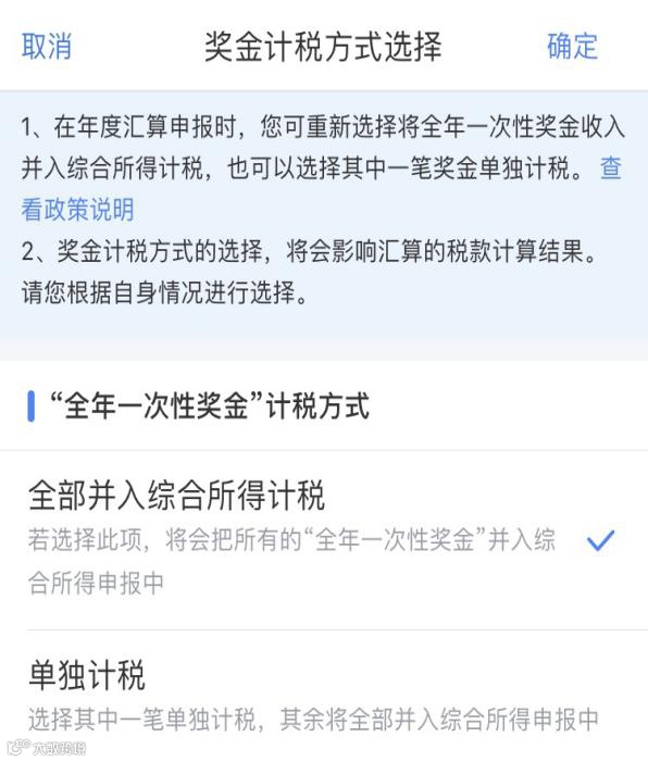两种计税方法计算出来的结果会有差别,纳税人可以自行比较,选择适用全年一次性奖金优惠政策或选择并入当年综合所得计算缴纳个人所得税。