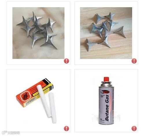 丁烷、平衡车、人体副产品、灭蟑螂笔、轮胎刺钉、任何含有草甘膦的产品、各国消费者保护协会 (CPA) 或其他监管机构(例如环境相关的监管机构)举报的其他危险材料。