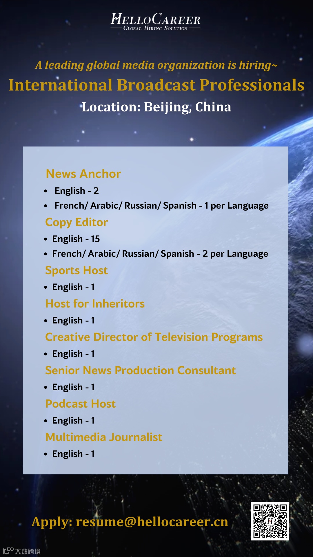 We are now seeking an experienced Creative Director, to join the production team at our global headquarters in Beijing, China.