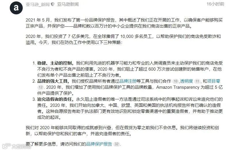 虚假评论、假货销售一直是跨境圈的难题。对于虚假评论,亚马逊在先前有发过相应的说明,但依旧有虚假评论现象出现。如今,亚马逊将采取更强硬的手段来扼制虚假评论。近日,亚马逊为此发布新的公告,同时也披露了最新的《品牌保护报告》。