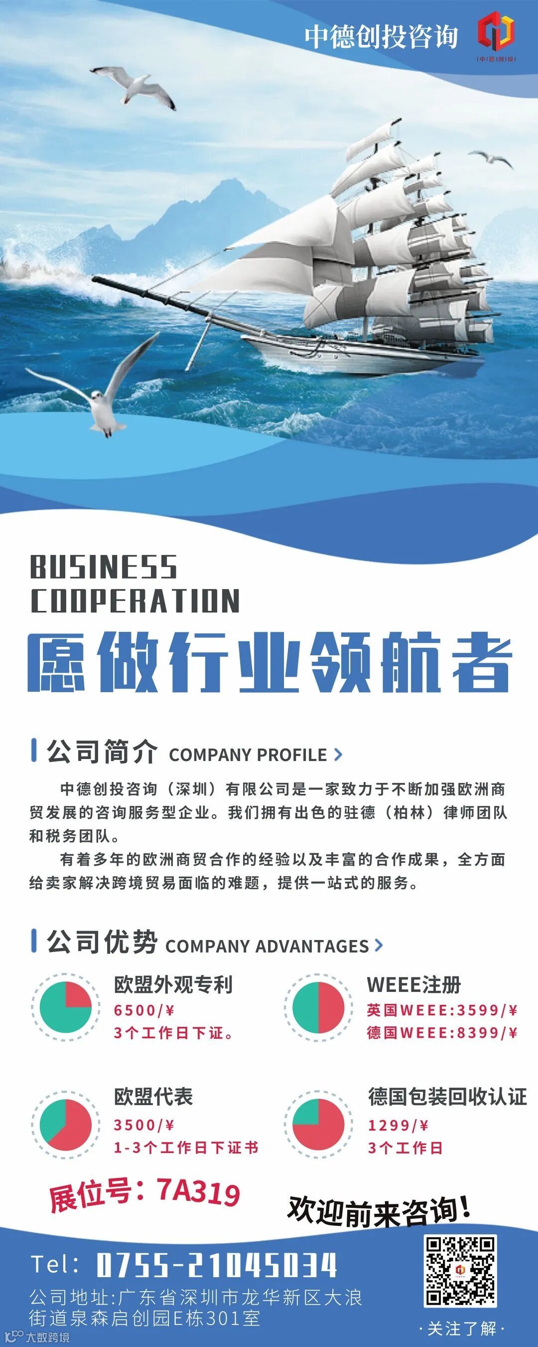 中德创投咨询(深圳)有限公司位于深圳龙华区,是一家专注于跨境电商行业的咨询服务型企业。公司拥有出色的驻德(柏林)律师团队和税务团队,有着多年的欧洲商贸合作经验以及丰富的合作成果,全方位替卖家解决跨境贸易面临的难题,为客户提供有关国内外VAT注册、商标专利申请、欧代、WEEE注册、包装法、各类跨境维权申诉等一站式整合服务。目前,中德创投已经成功服务过多家跨境出口企业,获得众多客户的赞许和认可。