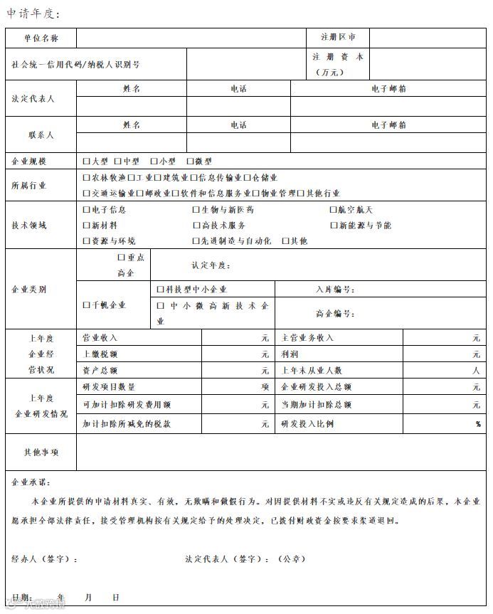 青岛市企业研发投入奖励申请表