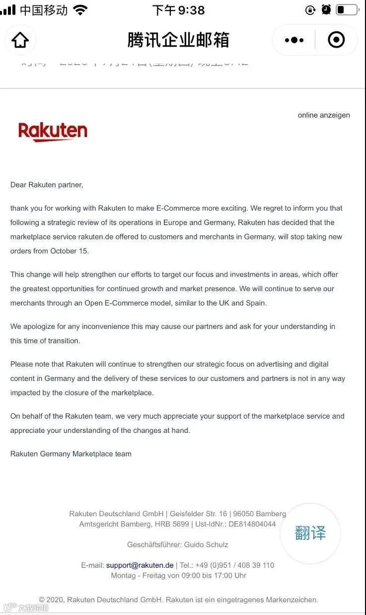 近日,德国乐天发布公告称,乐天将对其在欧洲和德国的业务进行战略性审查,因此从10月15日起,将停止接受新的订单。