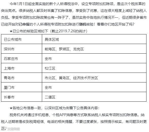 税务|各省市对个税专项附加扣除核验开始! 中青国合集团