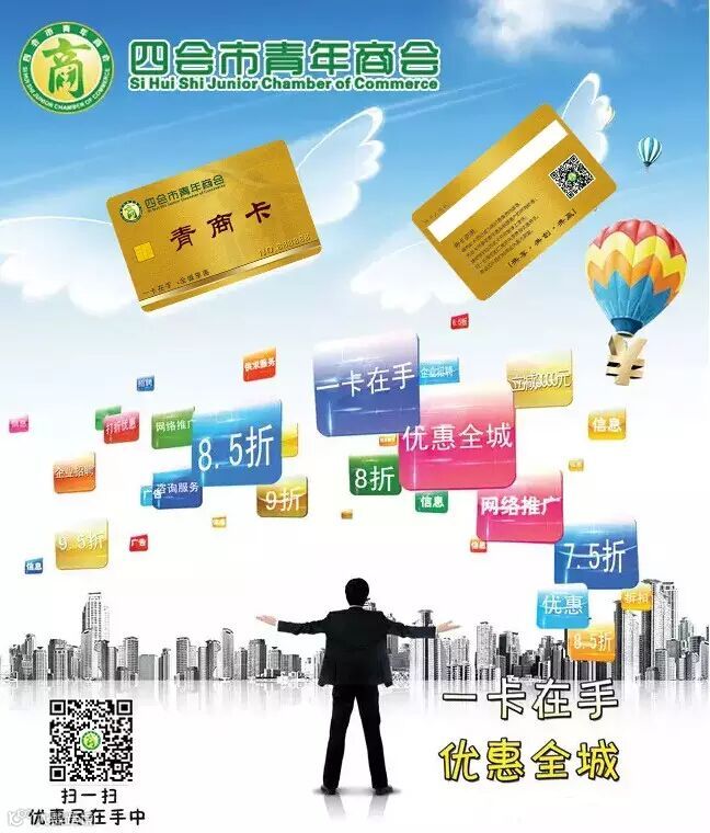 “青商卡”实现了四会首个商家大联盟,实现一卡多用、一卡通用的目标。凭此卡可以在本地上百个商家消费,享有优惠的功能。电子青商卡推出后,会员不用再带实体IC卡,手机扫一扫,折扣,积分轻松搞掂!