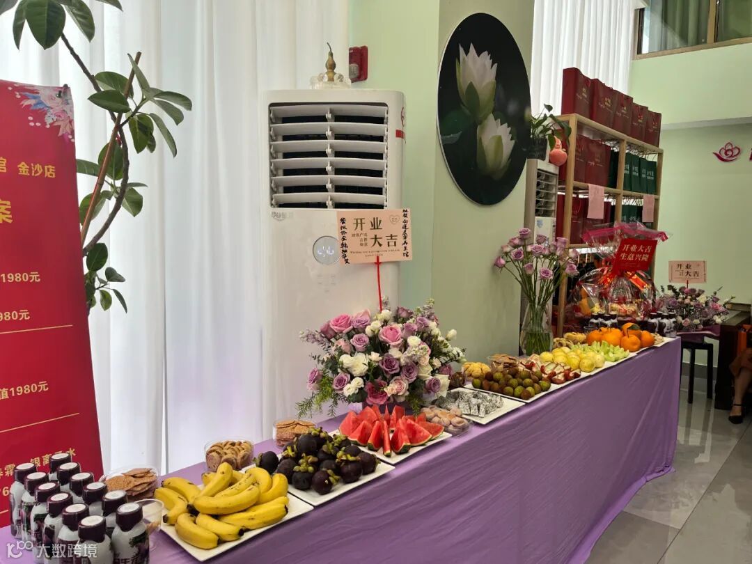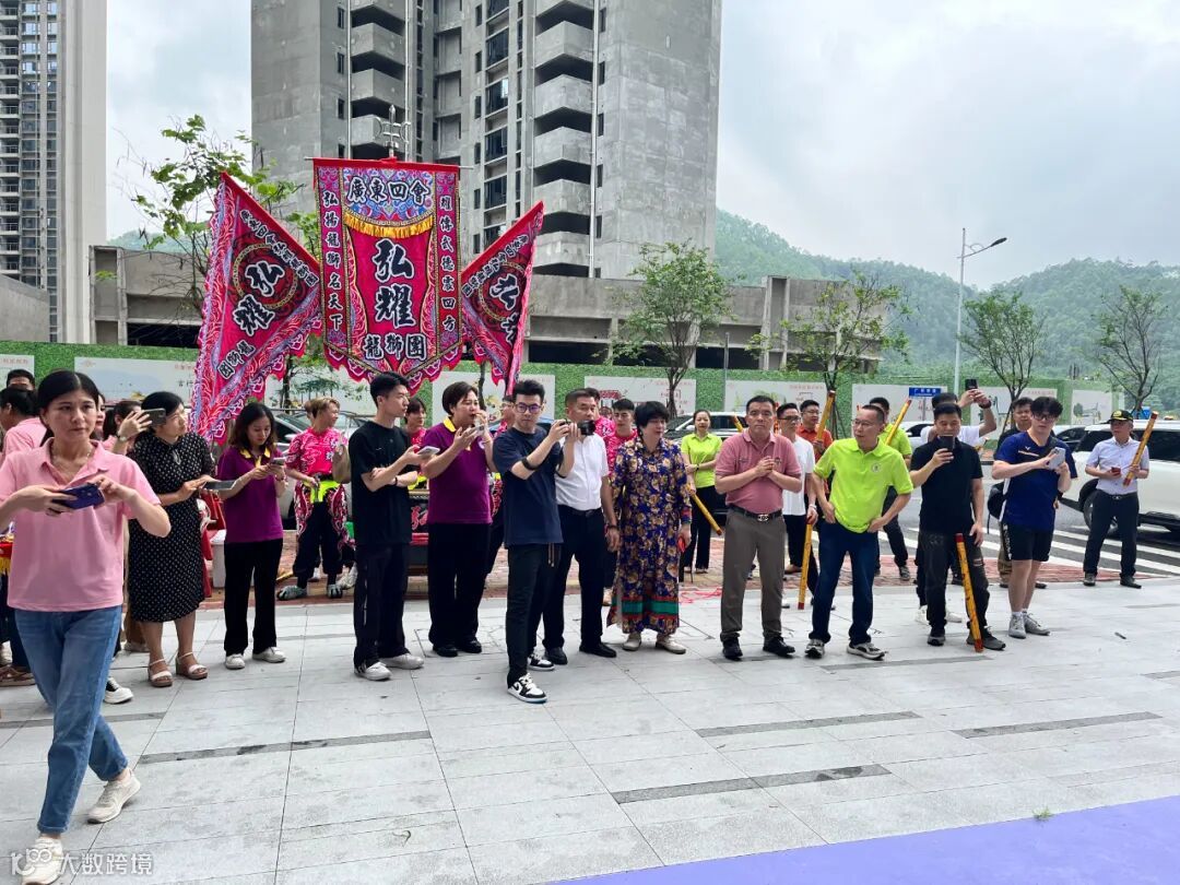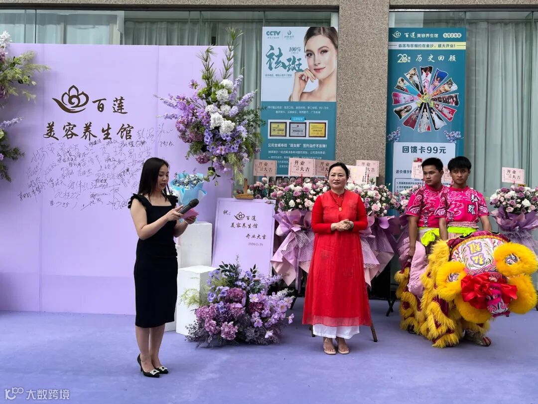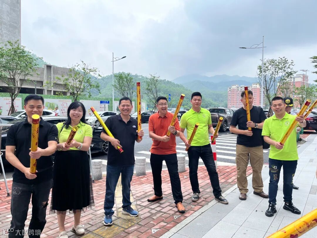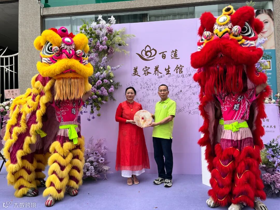 ▲送上玉如意扣摆件,祝贺四会市百莲美容养生馆乔迁开业庆典活动圆满成功、生意兴隆、财源广进