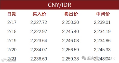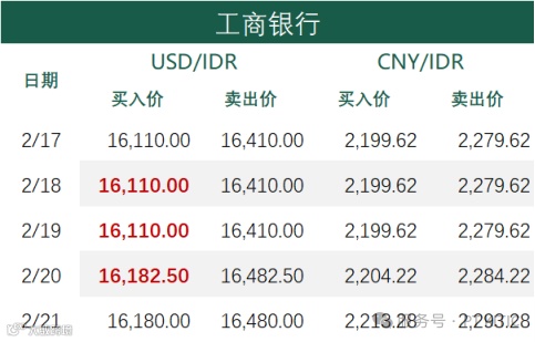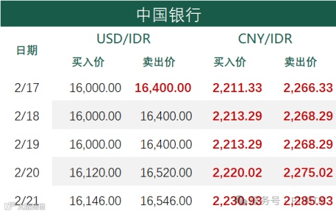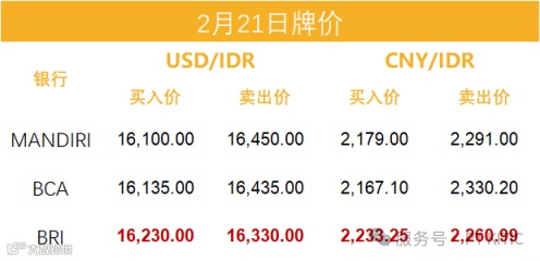 印尼部分商业银行主要币种2月21日外汇牌价