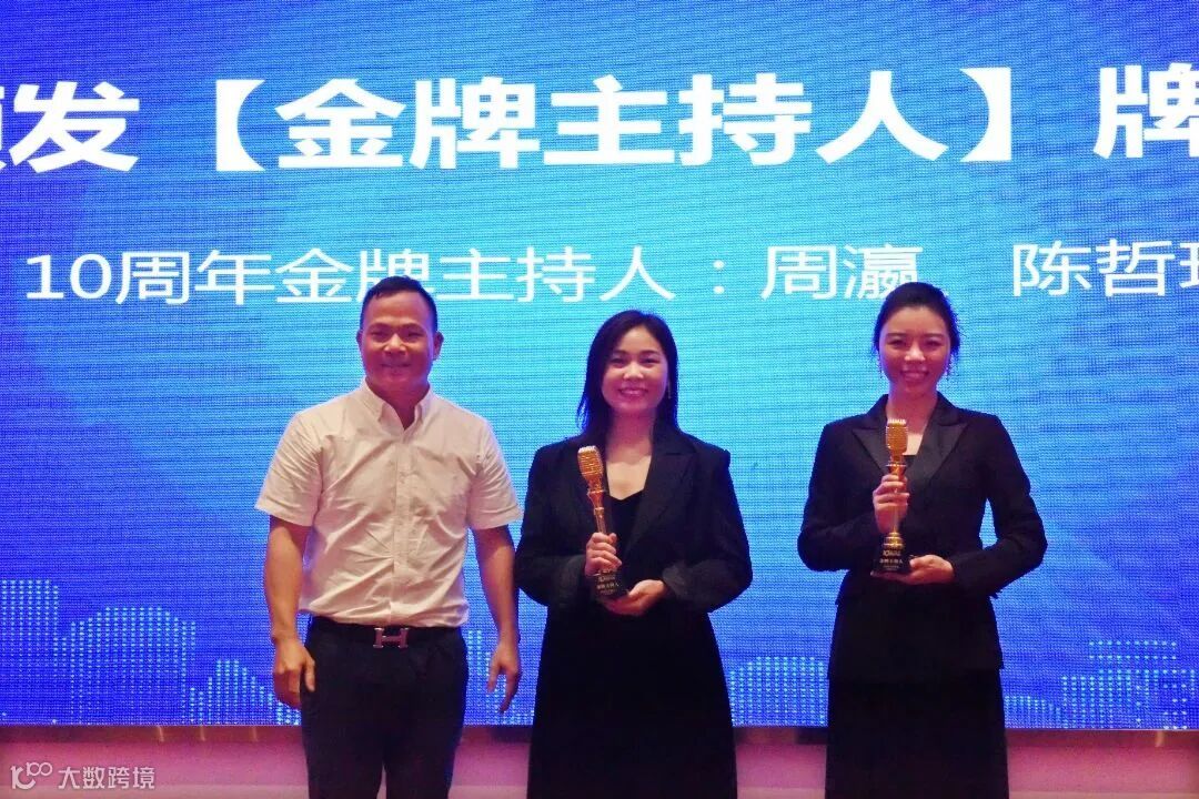 常务副会长徐仁良为商会金牌主持人周瀛和陈哲玲颁发牌匾