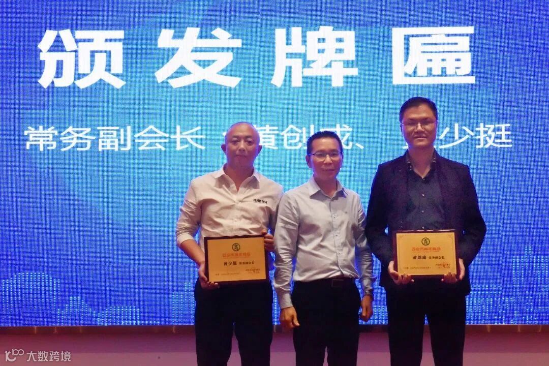 会长卢炳兴为常务副会长黄创成和黄少挺颁发牌匾