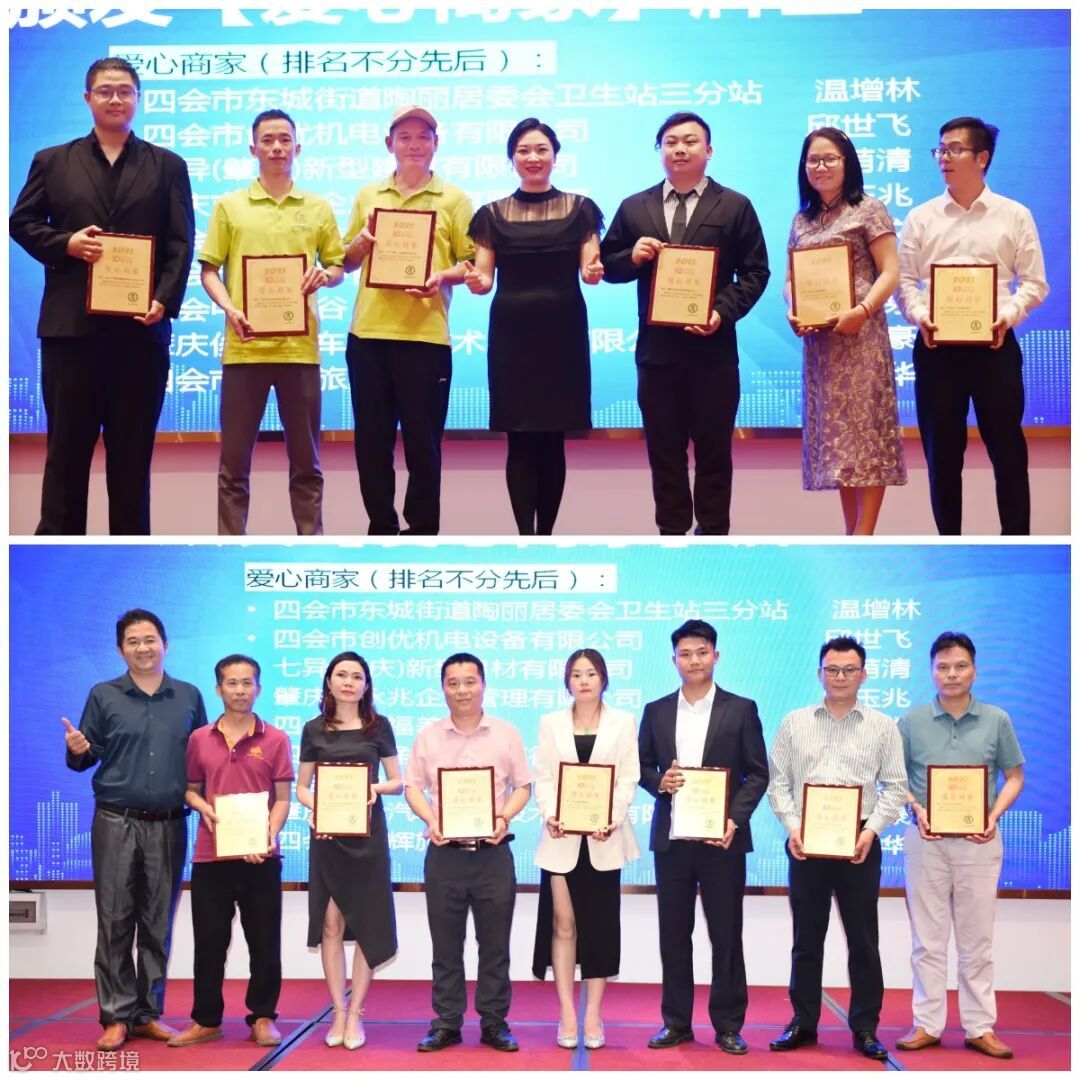 常务副会长兼监事长张雪琼和常务副会长伍志华为爱心商家颁发牌匾