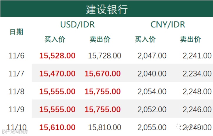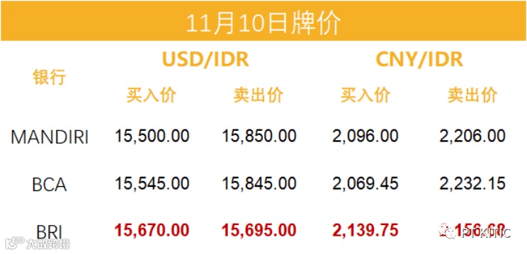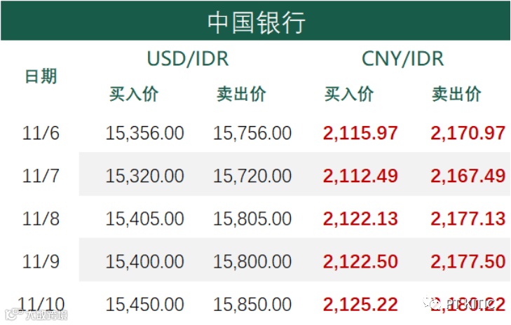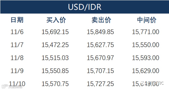 印尼央行每周牌价