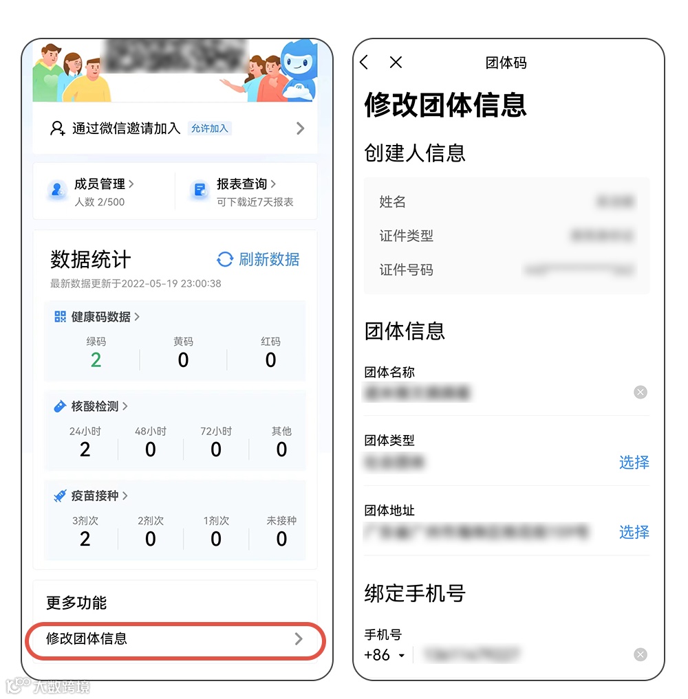 如后续团体信息有变更,创建人可通过团体详情页底部“修改团体信息”再次编辑团体信息。