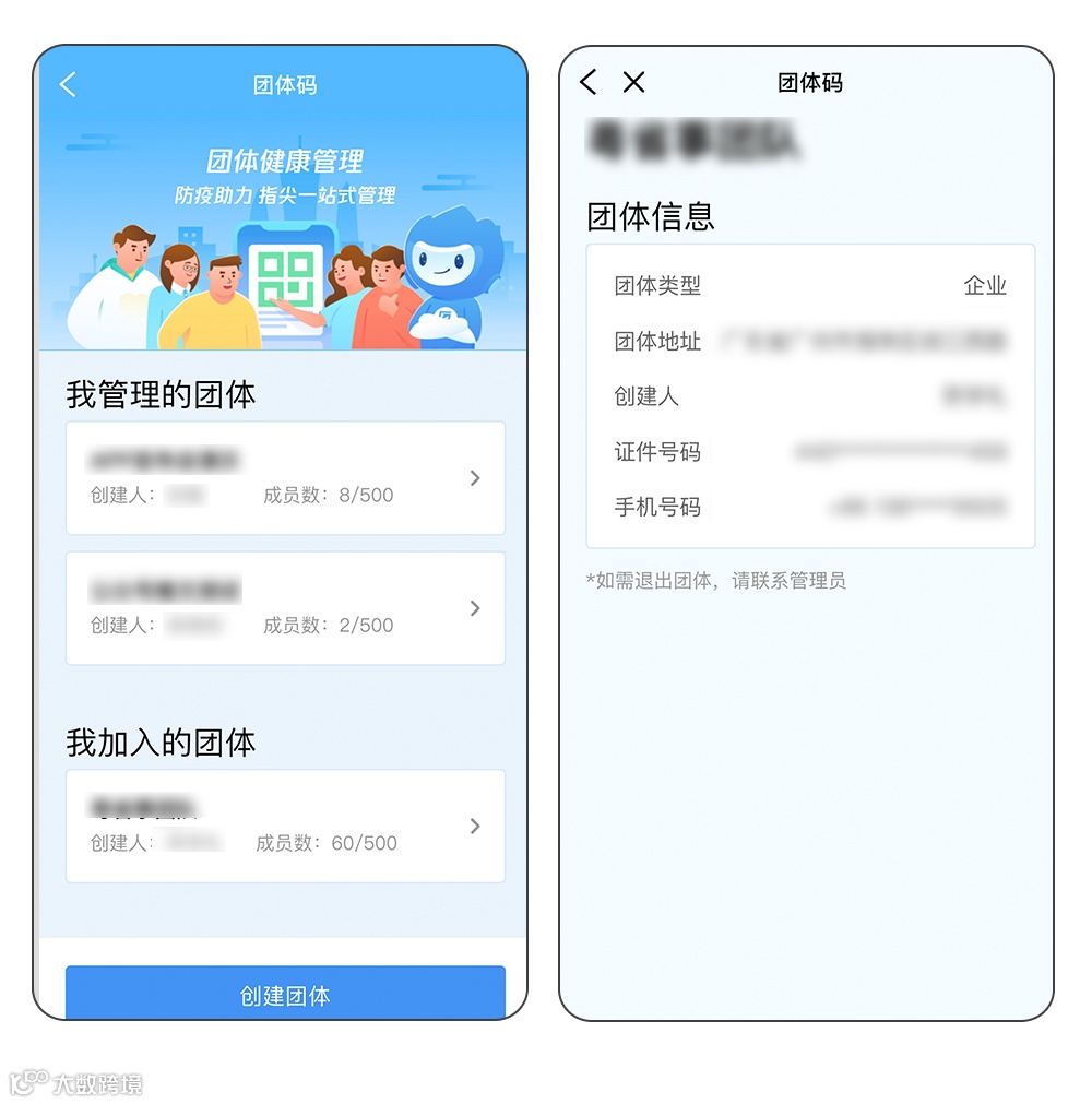 成员成功加入团体后,在团体码首页点击“我加入的团体”下的团体卡片,可查看自己所加入的团体信息。
