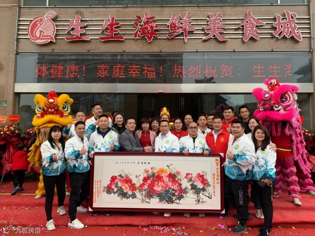▲送上开业字画,祝贺生生海鲜美食城开业大吉、生意兴隆、财源广进