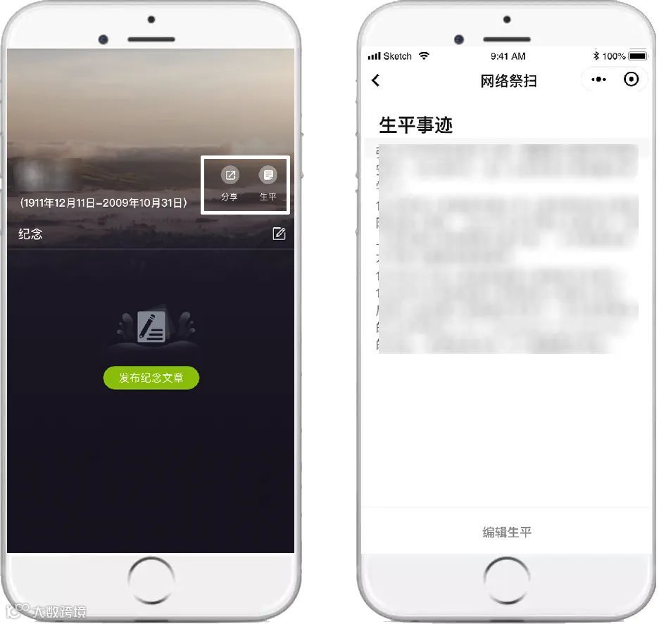 点击页面中的相框位置,可进入纪念空间,在纪念空间中,可以编辑发表先人生平文章。