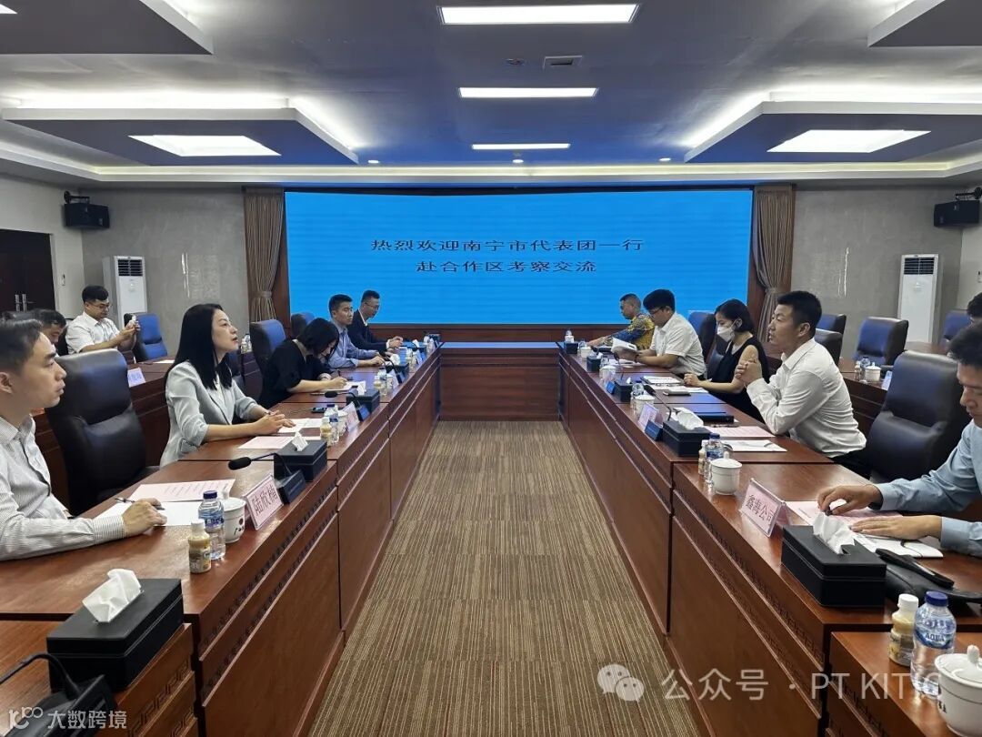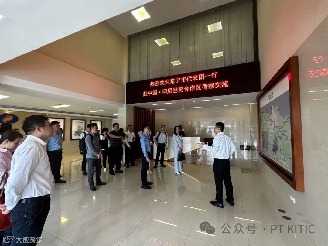 1月3日,南宁市外事办公室主任彭健率领南宁市代表团一行赴合作区进行考察交流。代表团随行人员有南宁市外事办公室出国管理科科长、南宁市外事办公室国际交流科科长、南宁建宁水务投资集团有限责任公司副总经理陈学文、南宁建宁水务投资集团有限责任公司总经理助理、办公室主任蒋原、南宁建宁水务投资集团有限责任公司环保事业部副部长余俊勋、广西绿城水务股份有限公司总经理蒋俊海、南宁交投物流投资有限公司董事长符家和、广西五投国际贸易有限公司副总经理温华民、南宁初芯集成电路有限公司董事长廖炳隆、南宁初芯集成电路有限公司执行副总马翔、南宁初芯集成电路有限公司公共关系部经理水玉霞、广西爱生生命科技有限公司董事长陈晓东、哪吒汽车印尼子公司总经理丁家贤、上海康恒环境股份有限公司印尼市场负责人黄长春、广西风华国际旅行社负责人项蝶。