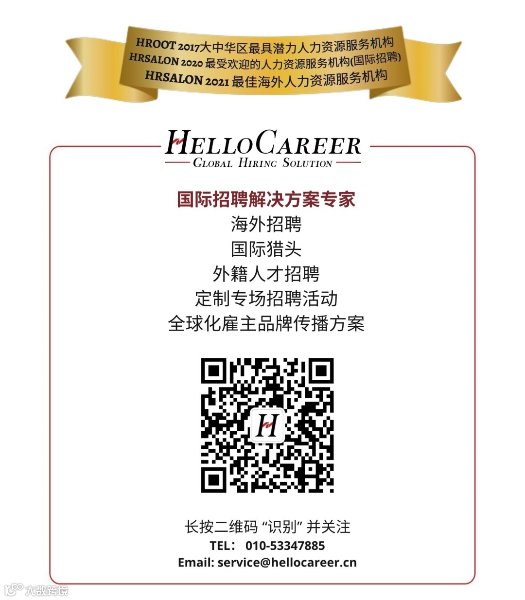 作为深耕国际招聘解决方案的先行者,HelloCareer始终致力于搭建中国出海企业与全球精英人才之间的桥梁。我们以专业的洞察、定制化服务和丰富的行业资源,帮助跨国企业精准匹配国际化人才,同时为求职者提供职业发展支持,赋能双向奔赴的全球化机遇。