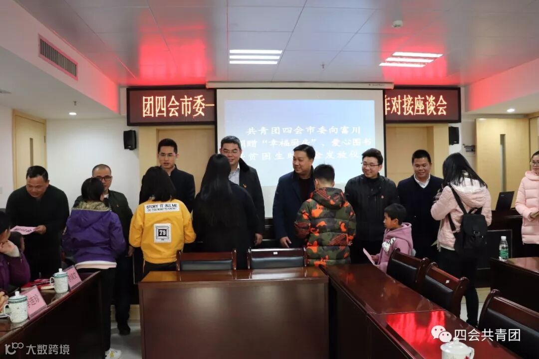 团四会市委与团富川县委在县园区大厦7楼大会议室召开了扶贫公益协作对接座谈会,富川县委副书记于福坚,四会市副市长、挂职富川县委常委、县人民政府副县长樊智浩,团四会市委书记刘明远、团四会市委副书记曾富荣、团富川委副书记邓开活、四会驻富川扶贫协作工作组组长邱传明、四会市青年商会副会长徐仁良、副会长朱威明等参加了会议。双方就进一步深化扶贫公益协作工作进行了深入的交流研讨,对两地共青团结对、社会组织交流、志愿服务交流、电商就业交流、“幸福厨房”建设定点、义教教育合作等问题达成了共识,开启了两地扶贫公益协作工作的序幕。