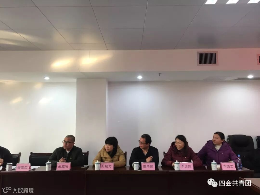 座谈会由团富川县委副书记邓开活主持了会议。团四会市委书记刘明远表示加强两地团委、社会组织、学校、企业结对交流,并就加强扶贫公益协作和结对帮扶工作深入交流。四会市人民政府副市长,挂职富川县委常委、副县长樊智浩要求两地团委要以高度的政治责任感,严格按照粤桂扶贫协作工作要求,深化两地共青团工作交流协作,实现优势互补,共同发展。富川县委副书记于福坚指出经过脱贫工作开展以来取得很大的成就,但需尽更大力气抓好精准脱贫工作,两地共青团扶贫公益协作要重点关注“因灾、因学、因残、因病”等四类人员,希望通过社会组织开展公益活动、爱心企业提供就业岗位、助学义教一对一结对为帮助他们。